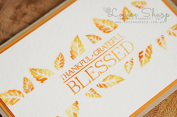The sentiment stamp is from Mixed Borders on page 123. The two-toned washed look was achieved using the using the baby-wipe technique. Fold a couple of baby wipes in half or quarters and use ink refills to ink baby wipes and use this as a makeshift ink pad. I used Melon Mambo and Pumpkin Pie ink refills.