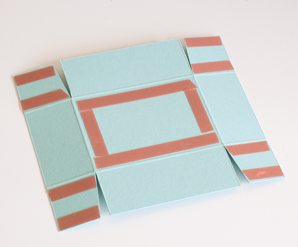 Step 5.Cut 4 insertions as shown and put box together using sticky-strip.
